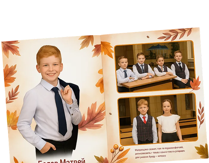 Да, вы можете выбрать один из 9 вариантов макетов фотокниги, таких как «Произведение», «Призвание», «Мечта», «Эксклюзив» и другие. Все шаблоны включают портрет выпускника, коллективное фото класса и снимок классного руководителя. Возможна адаптация под индивидуальный дизайн.