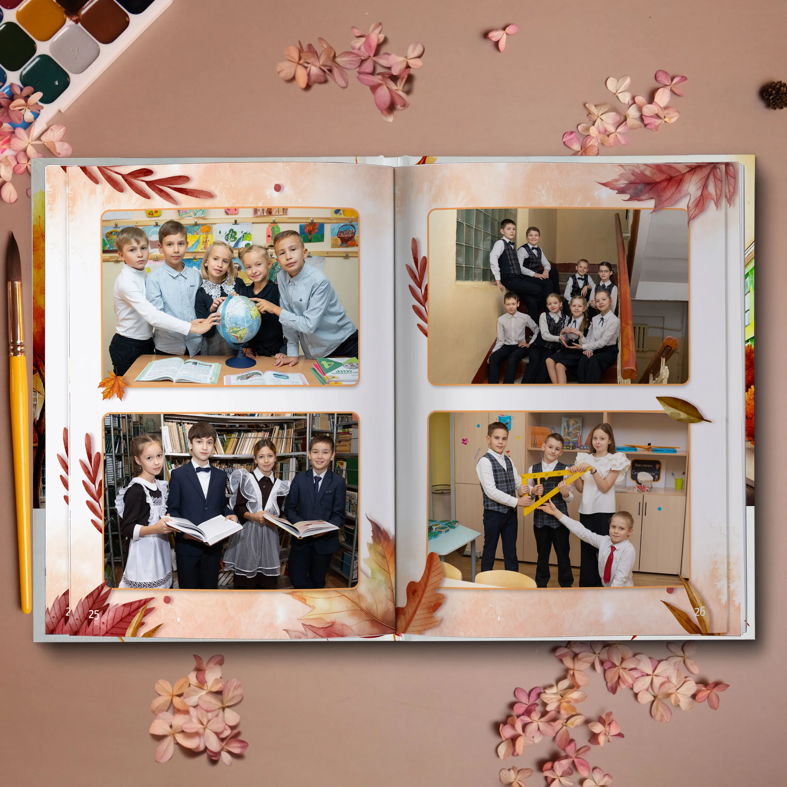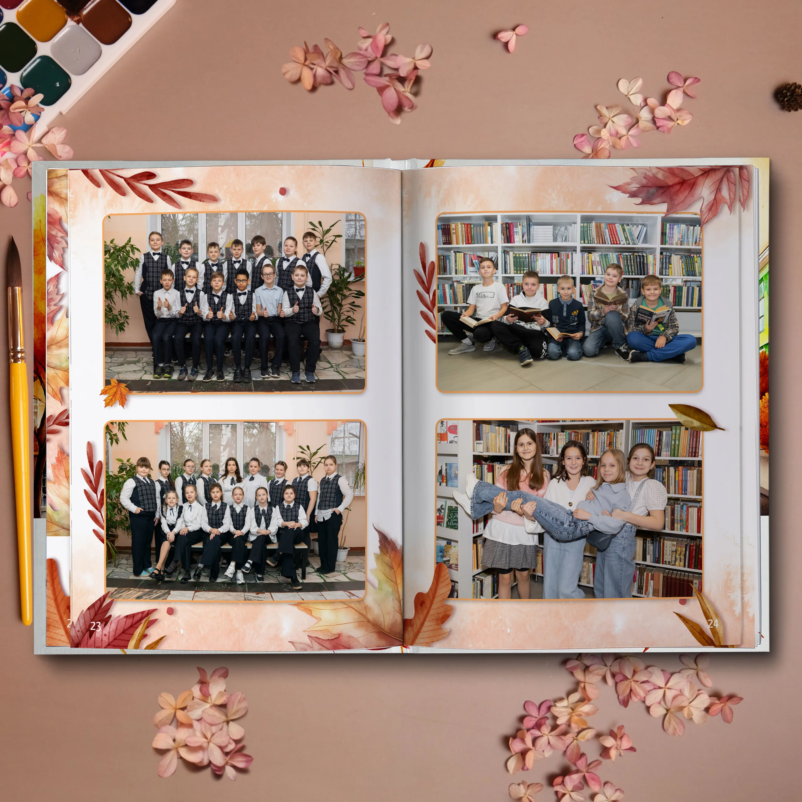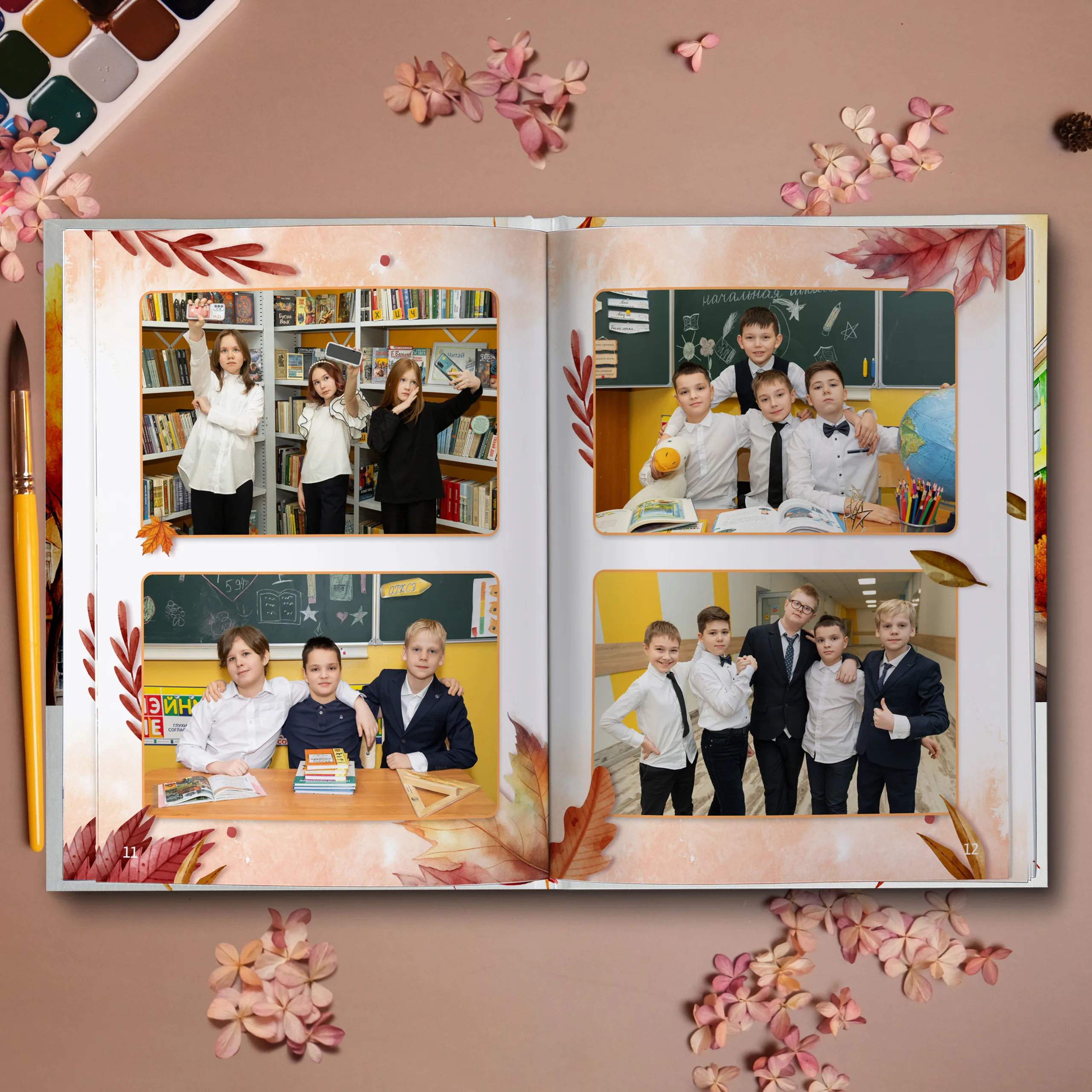 Последние 3 разворота — общие репортажные фотографии класса (12 фото)